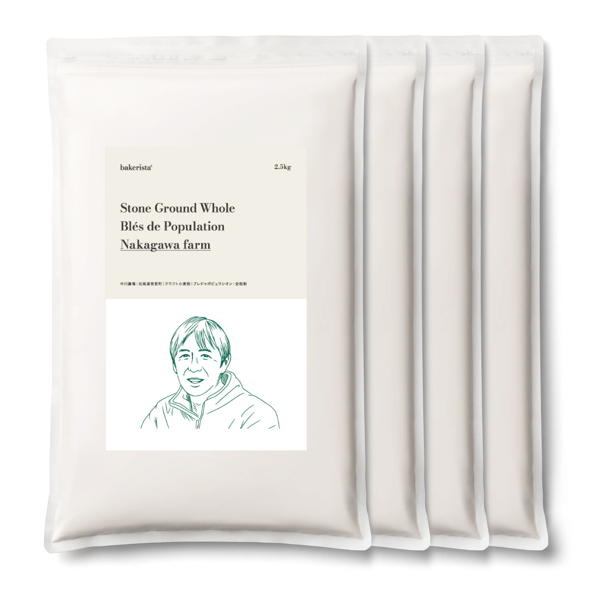 ベーカリスタは、この中川農場ブレドゥポピュラシオンを、シングルオリジン・クラフト全粒粉として石臼でていねいに製粉し、そのまま生地パンに使える形でお届けします。