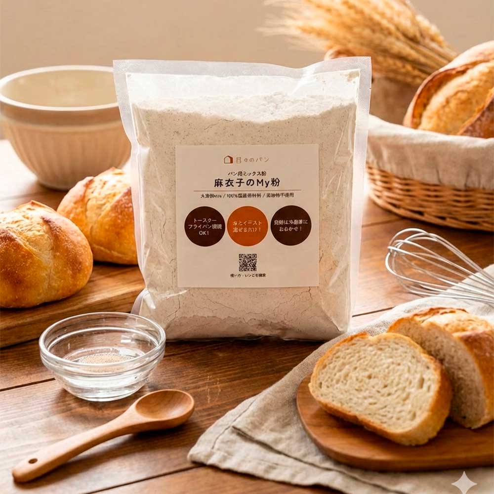 「誰もが失敗なく、美味しく、安全なパンを焼いてほしい。」そんな想いから、My粉は生まれました。私が長年研究してきたノウハウと、最高の国産素材を詰め込んだ自信作です。この粉があれば、パン作りがもっと身近で、もっと楽しくなりますよ。