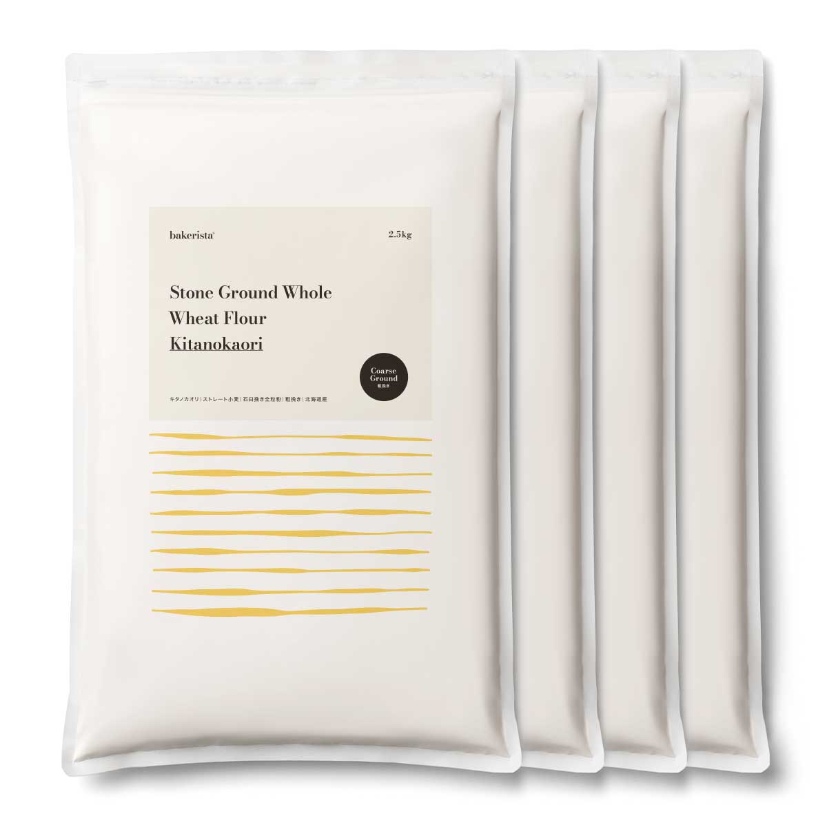 | 希少な「キタノカオリ」を贅沢に100%使用し、石臼で時間をかけて挽いた全粒粉。ミネラル、食物繊維豊富な石臼挽き全粒粉です。 |