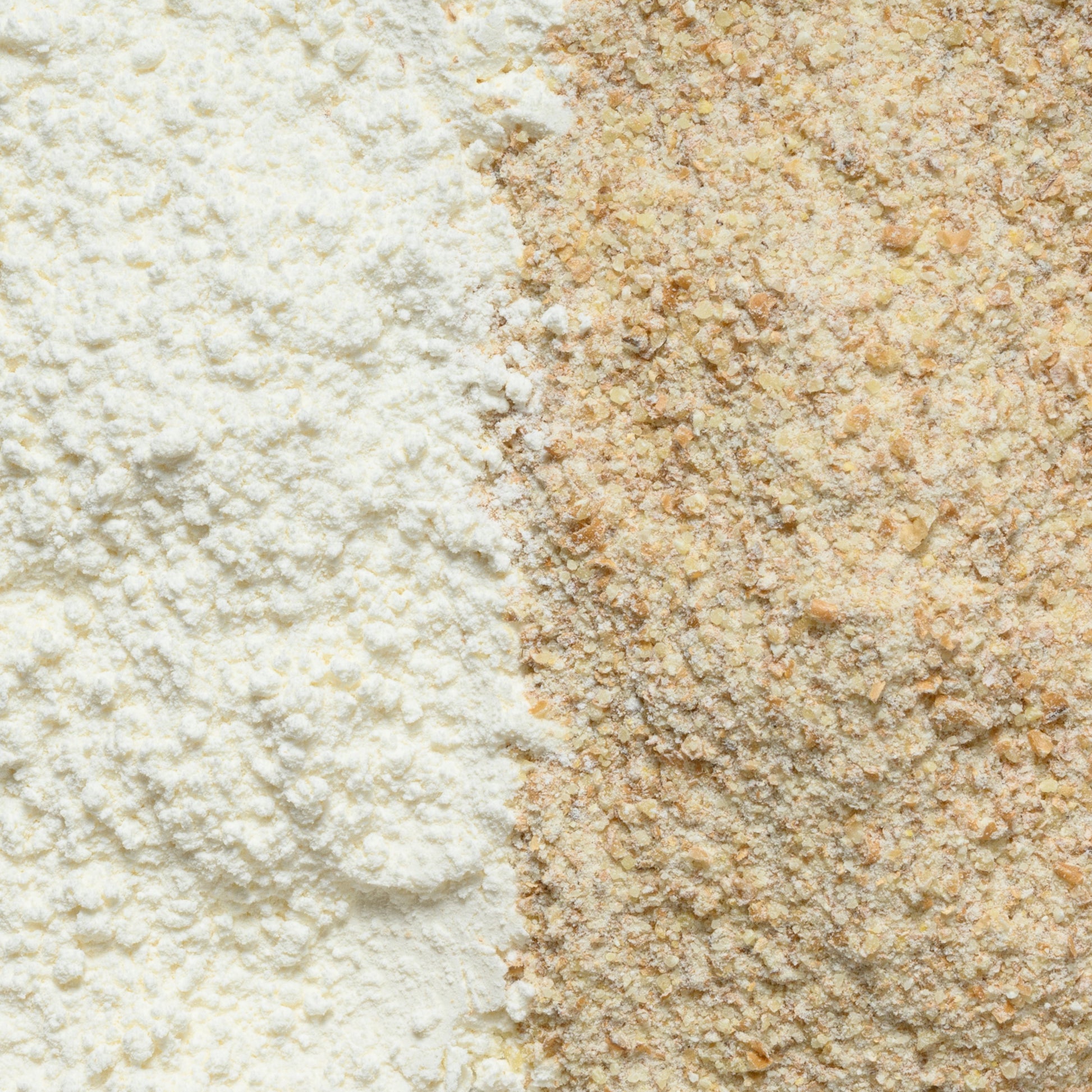 石臼で時間をかけて挽いた全粒粉。ゆっくり丁寧に石臼で挽くことにより、製粉時の熱が発生しにくく、小麦本来の風味が損なわれにくくなります。小麦の外皮まで細かく仕上げられており、扱いやすさにも優れます。