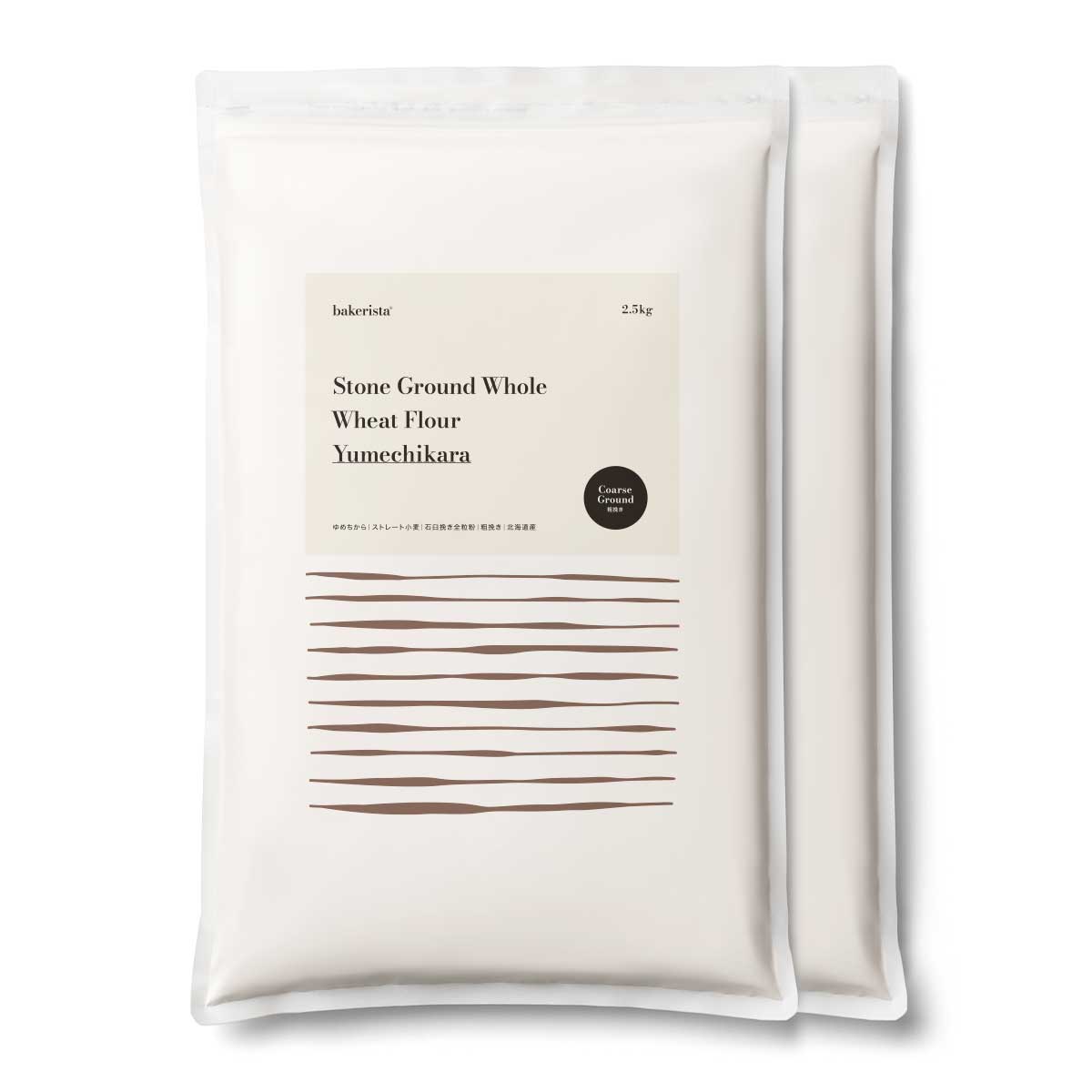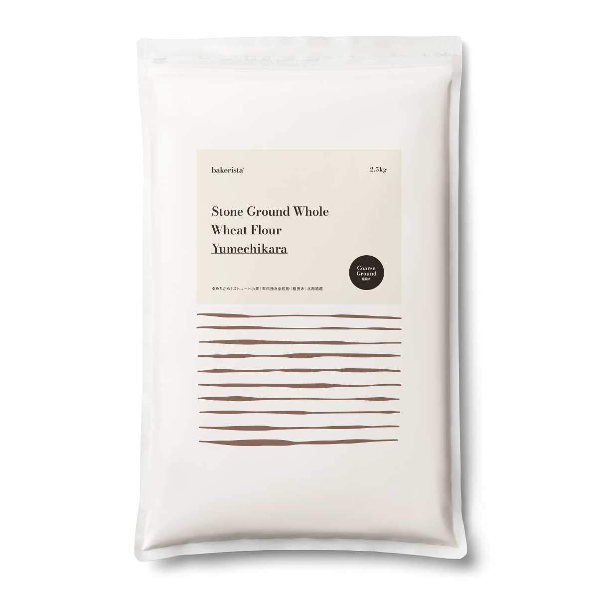| 北海道産の小麦を殻ごと丸ごと石臼で挽いた全粒粉です。小麦が持つ栄養素を余すことなくたっぷりと含んだ、香り高い豊かな風味が特徴です。生産者の思いを食卓に届ける、安心安全の小麦粉です。 |